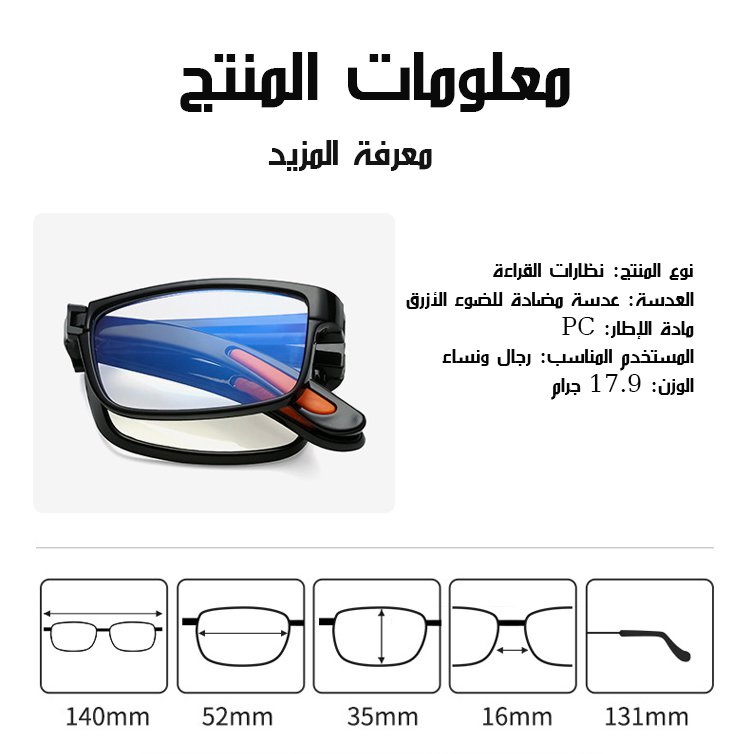 نظارة قراءة محمولة مع عدسة تقدمية متعددة البؤر ومضادة للضوء الأزرق